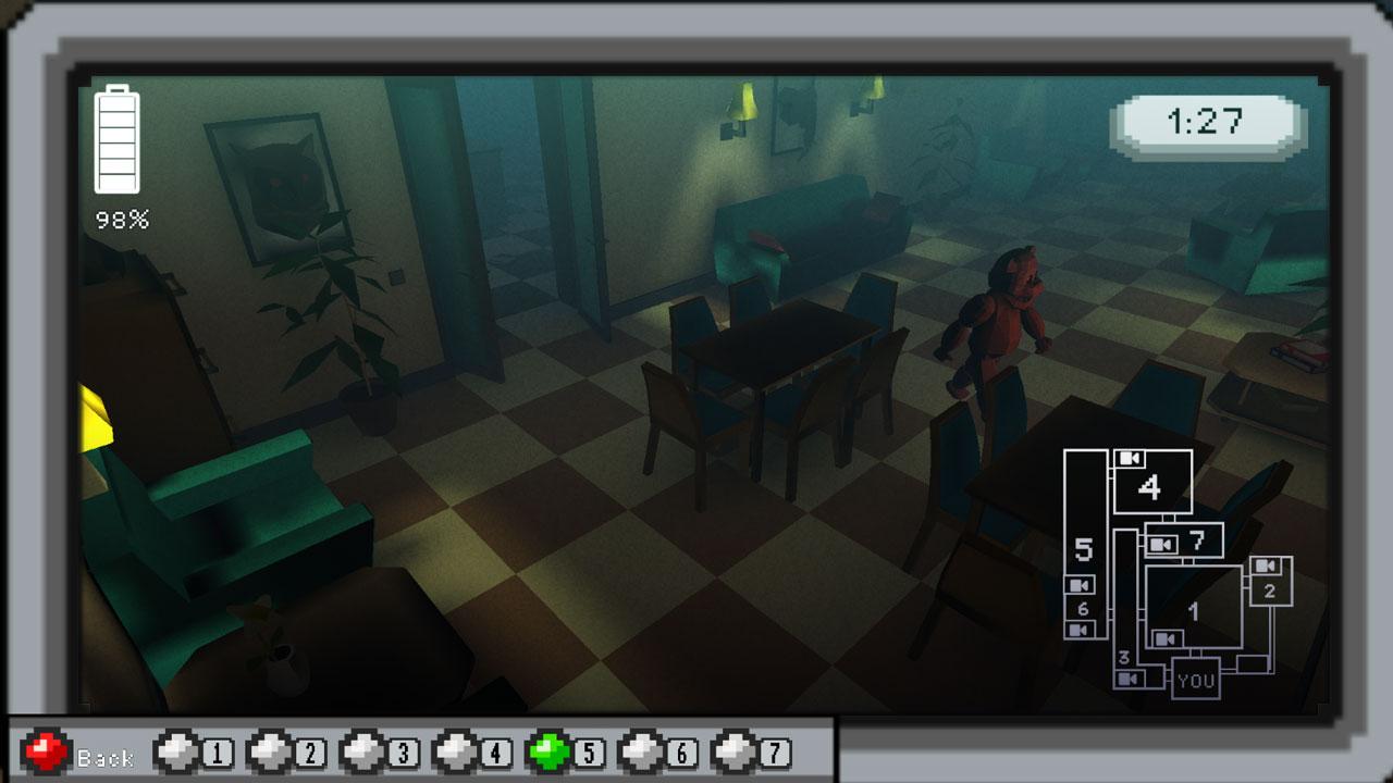 Szkoła Pixel zatrudniła cię jako strażnika nocnego. Czy kiedykolwiek myślałeś, że twój najgorszy koszmar się spełni? Te urocze zwierzęta robota - lisy, niedźwiedzie, zające będą tu pracować z tobą. Ale dzięki nocnym potworom stają się przerażającymi potworami. Zostań w swoim bezpiecznym pokoju i oglądaj stworzenia pikseli z kamerami i monitorami. Bądź ostrożny! Użyj latarki i pamiętaj: te potwory poruszają się w ciemności. Przetrwaj osiem nocy w szkole lub umrzyj.