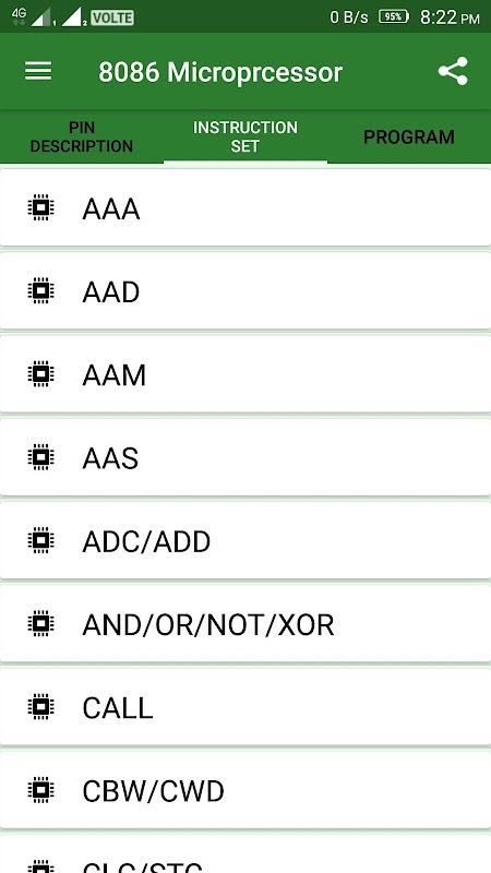 This app is designed keeping in mind that it should be useful for students and engineers as 8086 is playing a key role in latest technology all over the world.