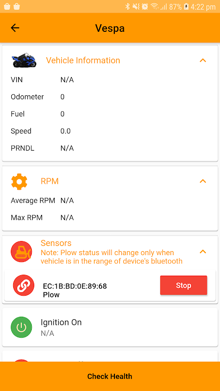 Pomaga w weryfikacji poprawności instalacji urządzenia. Wyświetl stan czujnika Bluetooth