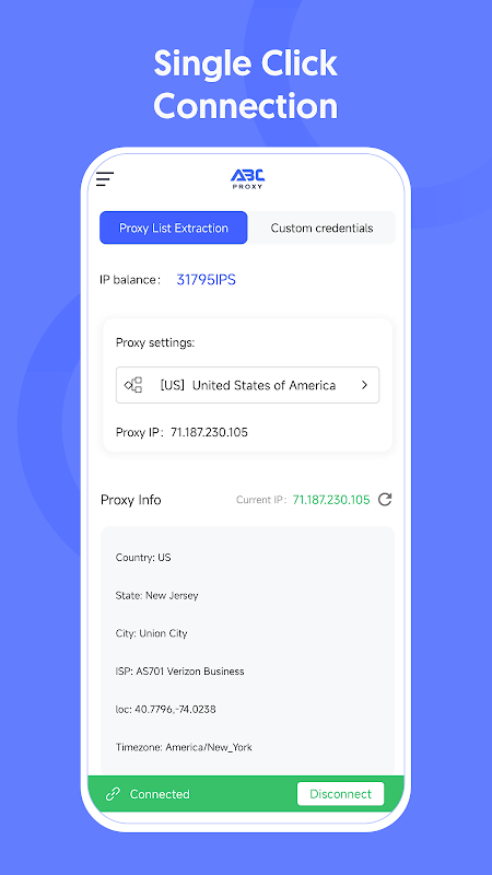 Zainstaluj aplikację ABCProxy już dziś, aby zarządzać serwerami proxy i uzyskiwać dostęp do preferowanych stron internetowych za pomocą prostego połączenia jednym kliknięciem.