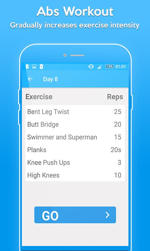With animations , you can make sure you use the proper form for each abs exercise & abs workout and achieve optima results. No equipment is needed, so you can easily start your workouts at home or anywhere at any time.