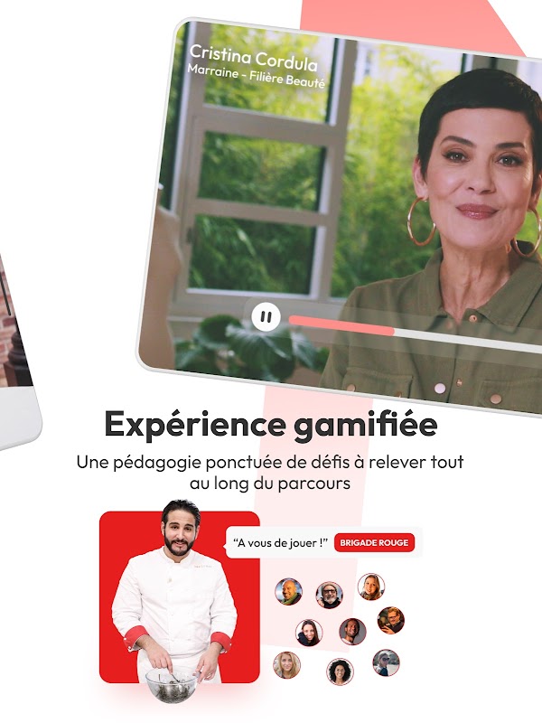 Dzięki radom i wsparciu najbardziej znanych profesjonalistów w swojej branży, takich jak Cristina Cordula i Philippe Etchebest, sponsorów kursów Beauty and Cooking, uczący się korzystają z unikalnych treści edukacyjnych: