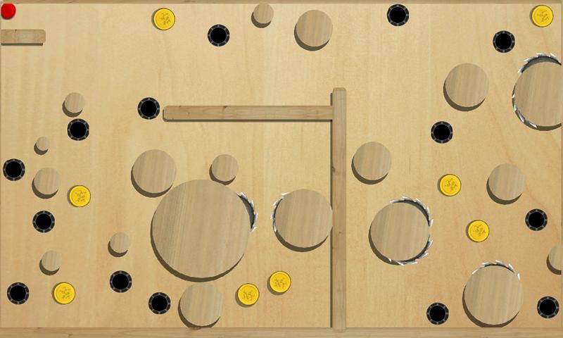 Przechylaj urządzenie aby kontrolować kulkę i unikaj niebezpiecznych pułapek.