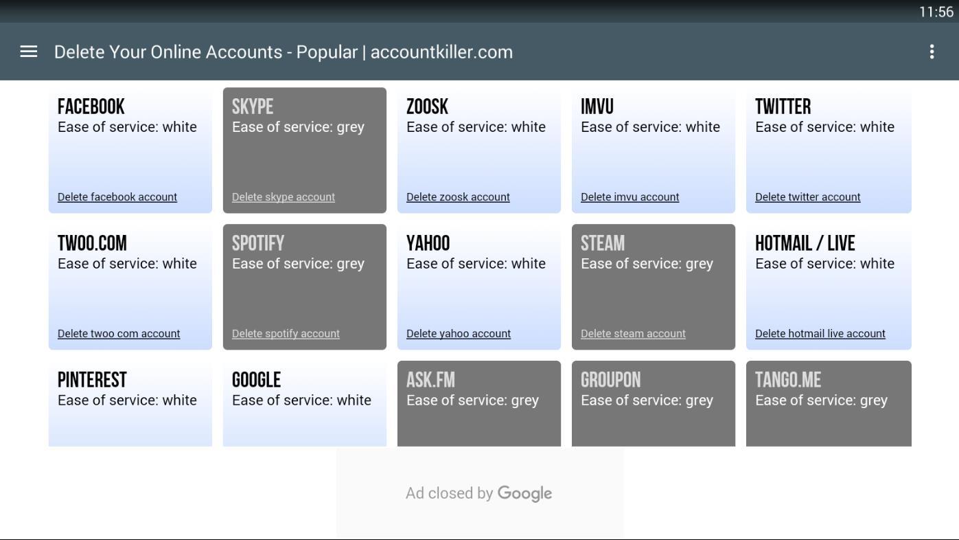 AccountKiller app, first aid in account termination