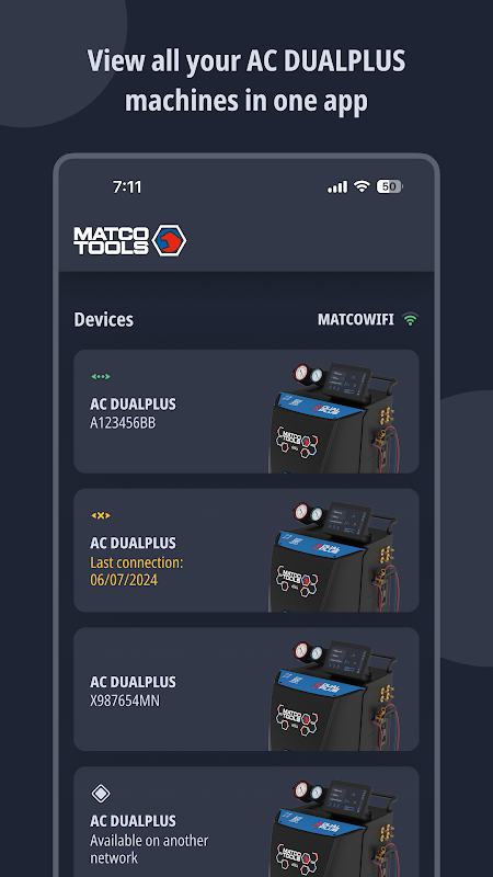 Aplikacja umożliwia stacjom ładowania ACDUALPLUS komunikację ze smartfonem i pozwala technikowi na zdalne wykonywanie procedur serwisowych układu klimatyzacji, bezpośrednio z wyświetlacza smartfona. Specjalny system powiadomień powiadomi technika o zakończeniu serwisu lub gdy stacja ładowania ACDUALPLUS wykryje awarię w układzie klimatyzacji. Co więcej, dzięki intuicyjnemu interfejsowi użytkownika, wykonane usługi konserwacyjne można łatwo sprawdzić i zarządzać nimi nawet wtedy, gdy stacja jest wyłączona.