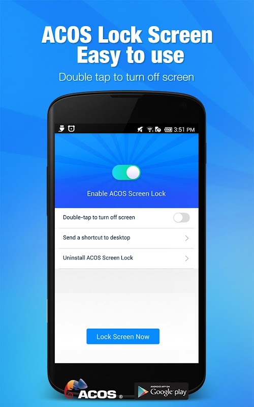 ACOS Screen Lock is a simple and practical application, allowing you lock your screen with a single tap, freeing up your power button.