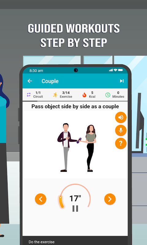 Dzięki dołączonemu silnikowi zamiany tekstu na mowę możesz wykonać cały trening bez przerywania ćwiczenia. Dodatkowo możesz aktywować przewodnik dźwiękowy na sekundę, aby uzyskać najlepszy rytm ćwiczeń.