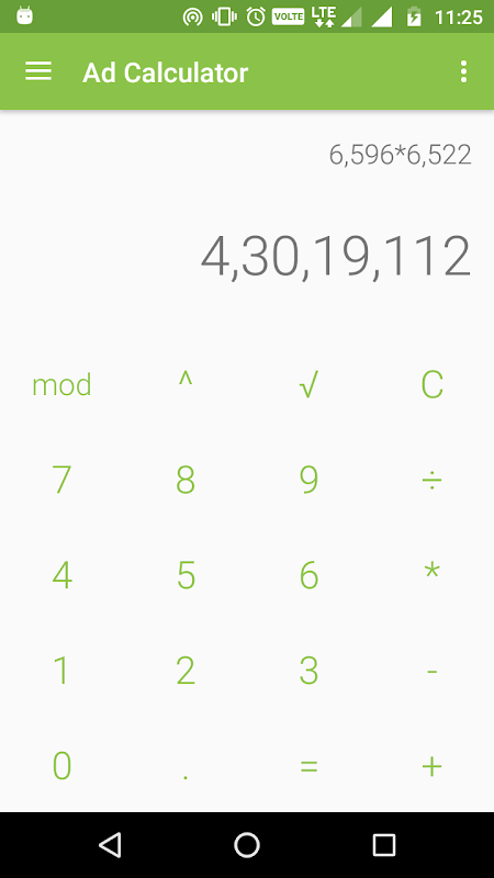 The Ad calculator has basic features of addition, subtraction, multiplication, division.