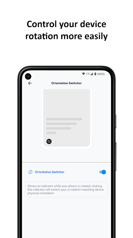 Przełącznik orientacji : Ta funkcja pomaga użytkownikom skuteczniej i łatwiej kontrolować orientację urządzenia. działa to poprzez wyświetlenie ikony w lewym dolnym rogu podczas obracania urządzenia, po kliknięciu tego przycisku obrót urządzenia dostosuje się i zmieni orientację fizyczną urządzenia. Przełącznik orientacji nie wykorzystuje żadnych dodatkowych zasobów, ponieważ nasłuchuje jedynie zmian wartości czujnika akcelerometru. a akcelerometr jest zawsze aktywny na każdym urządzeniu z Androidem. Chociaż w przypadku niektórych starszych urządzeń bez akcelerometru ta funkcja nie jest obsługiwana.