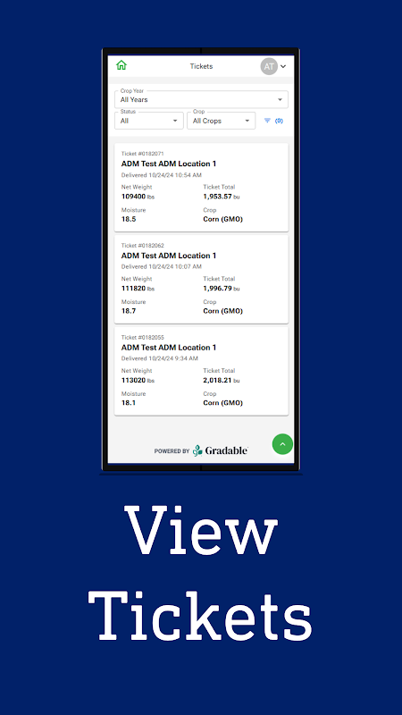 ADM Access pomaga zachować porządek i kontrolę nad firmą dzięki ADM. Łatwe przeglądanie i zarządzanie umowami, biletami skalowymi i rozliczeniami — wszystko w jednym miejscu. Dostęp do ofert gotówkowych i kluczowych danych konta, aby prowadzenie interesów z lokalną placówką ADM było łatwiejsze niż kiedykolwiek.