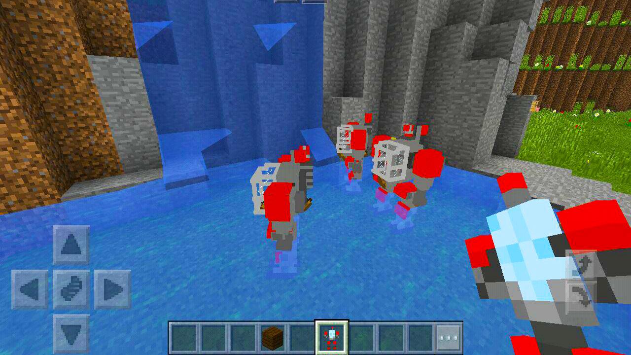 To create a robot in this MCPE mod, you just need to create a stray, or find it. The robot in this MCPE mod will not cause you any harm, but will only protect you from the mobs of horrors. Just go to him and press "Ride". Now your unforgettable adventures on the sandbox begin!