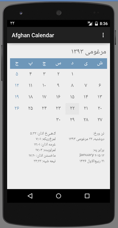 Afghan Calendar; A calendar that has numerous of great features, below are some of them.