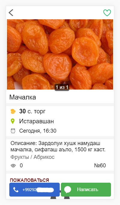 Agrarna tablica ogłoszeń w Tadżykistanie. Sprzedam Owoce, Zboża ... Agros tch