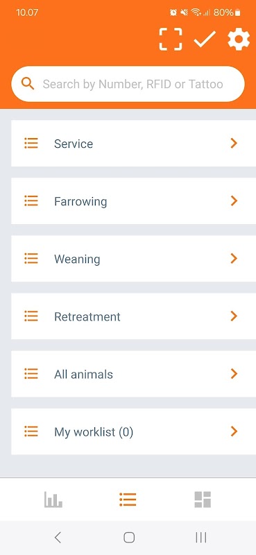 Dostępne są również listy działań dotyczące usług, porodów i odsadzania. Można stworzyć „własną” listę roboczą i skorzystać z listy wszystkich zwierząt, gdzie dostępnych jest kilka filtrów i sortowań.