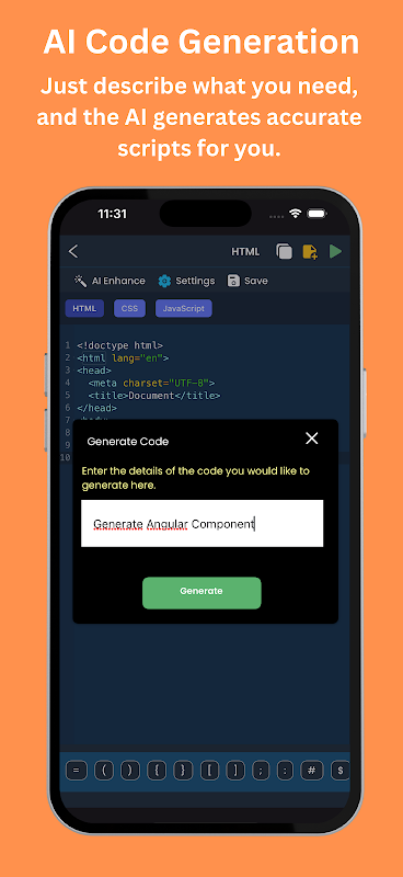 AI Code Generator & Runner to najlepszy mobilny plac zabaw dla programistów, studentów i entuzjastów technologii, którzy chcą generować, edytować i wykonywać kod przy użyciu sztucznej inteligencji w ponad 25 językach programowania — a wszystko to w jednej potężnej i płynnej aplikacji.