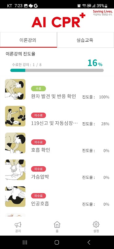 Aplikacja szkoleniowa Koreańskiego Czerwonego Krzyża w zakresie resuscytacji krążeniowo-oddechowej (CPR).