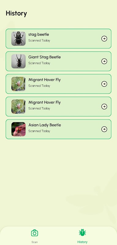 Gromadź historię swoich skanów i buduj cyfrową kolekcję napotkanych gatunków. Śledź miejsca i daty odkryć. Dziel się fascynującymi znaleziskami z rodziną i znajomymi.
