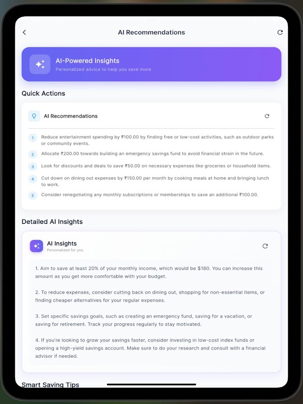 W przeciwieństwie do podstawowych trackerów wydatków, Savings Tracker AI wykorzystuje sztuczną inteligencję, aby zrozumieć Twoje nawyki finansowe i zapewnić spersonalizowane rekomendacje. Każda porada jest dostosowana do Twojej konkretnej sytuacji, budżetu i wzorców wydatków.
