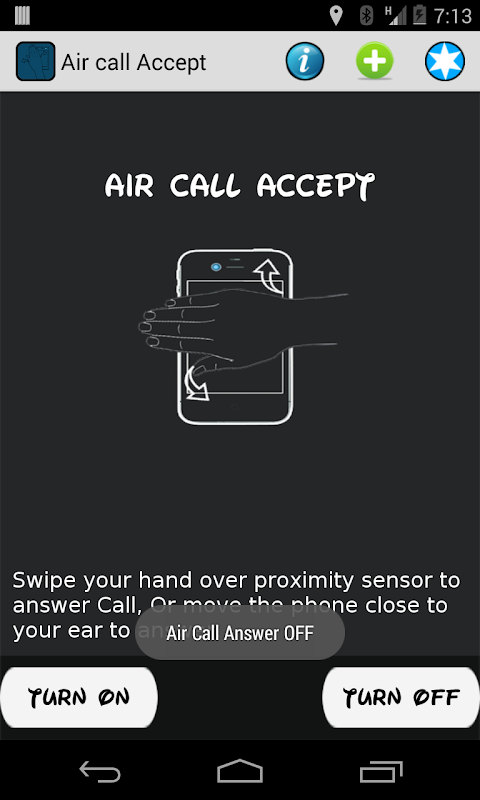Air Zadzwoń Zebrane wykorzystuje czujnik zbliżeniowy w telefonie, wykrywa kiedy fala rękę na ekranie lub po umieszczeniu telefonu w pobliżu uszu.