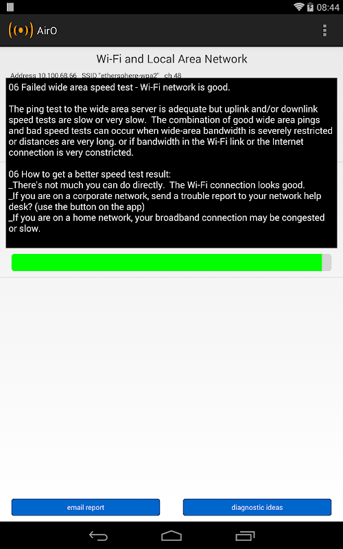 AirO jest przeznaczony dla technicznych i niezbyt technicznych właścicieli urządzeń z systemem Android obsługujących Wi-Fi. Wyświetla stan połączenia Wi-Fi („Local Area”) i mierzy charakterystykę połączenia „Wide Area” z serwerem znajdującym się głębiej w sieci. Można go użyć do odpowiedzi na pytania takie jak: