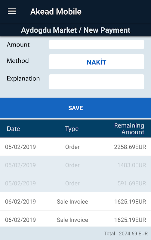 Ponadto możesz otrzymać zamówienie i wystawić fakturę za pomocą modułu Akead Mobile Plus. Możesz wysłać te dokumenty pocztą do klienta lub wydrukować je. Możesz także zapisać płatności, które otrzymujesz za pomocą strony Utwórz płatność.
