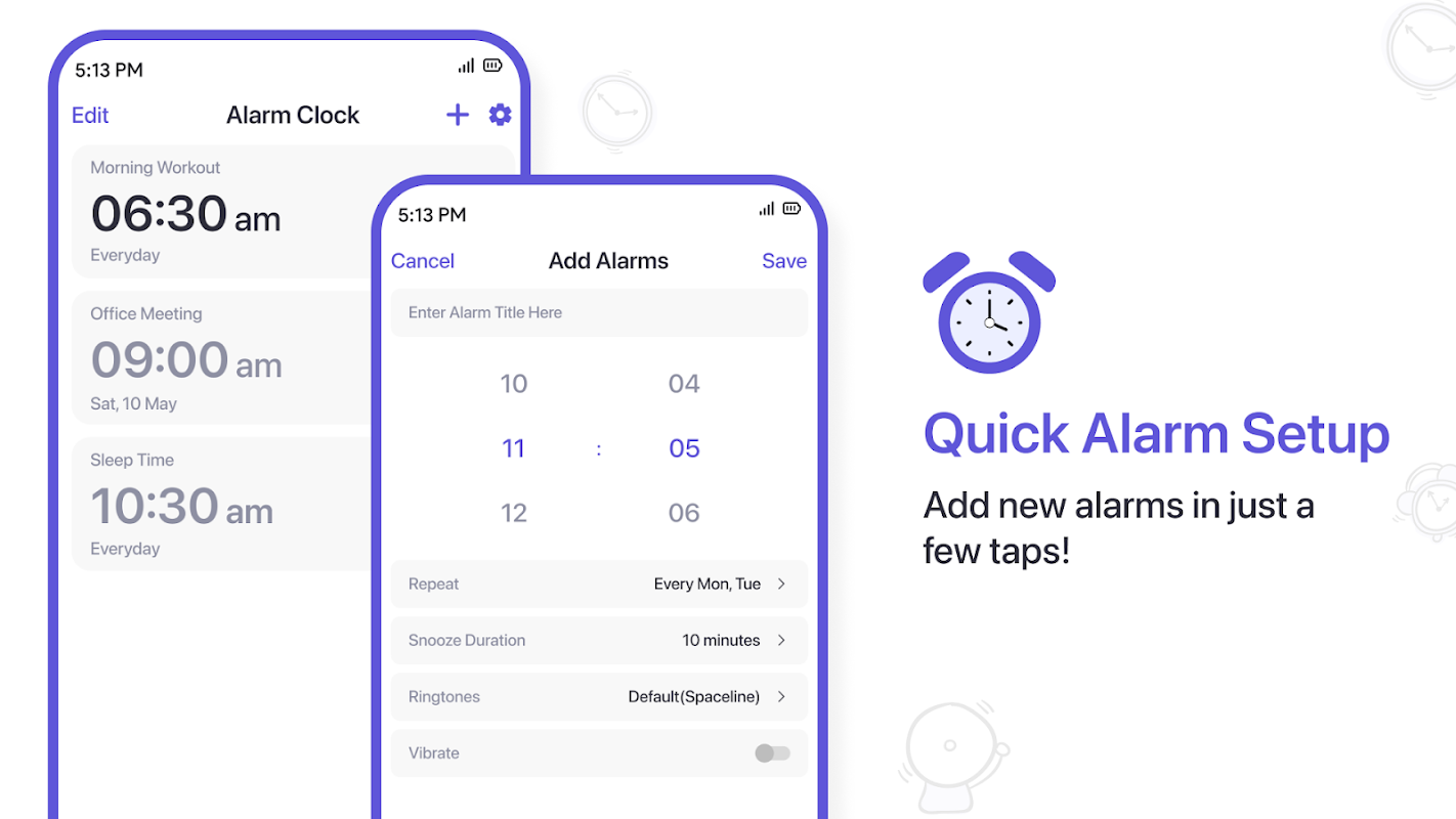 • Ustaw nieograniczoną liczbę alarmów z własnymi dzwonkami, drzemką, wibracjami i opcjami powtarzania.
