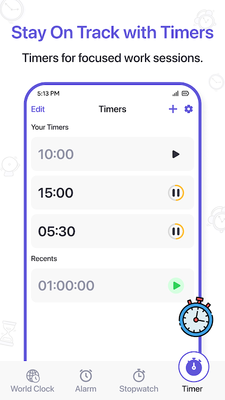 • W pełni funkcjonalna aplikacja timera, która wspiera Twoje codzienne potrzeby związane z odliczaniem czasu.