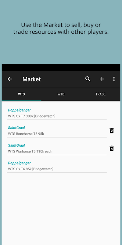 With the market you can now post your WTS / WTB and trade offers. No more spamming in in-game chat!