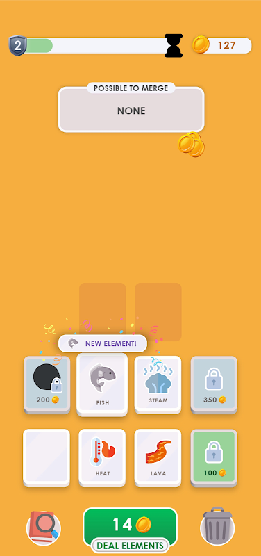 Twórz kombinacje, przeciągając jedną kartę żywiołu na drugą, aby zdobywać monety i odblokowywać nowy element. Kupuj nowe losowe elementy na swoją planszę za te monety.