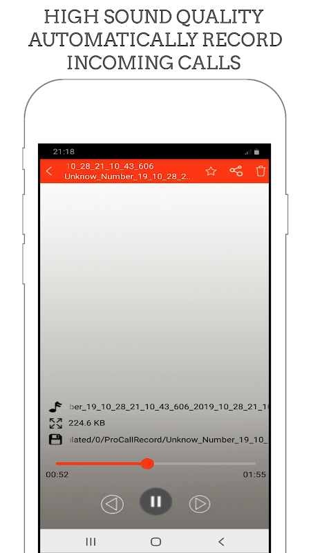 It records all your incoming & outgoing calls in high quality and stores it on your phone as .