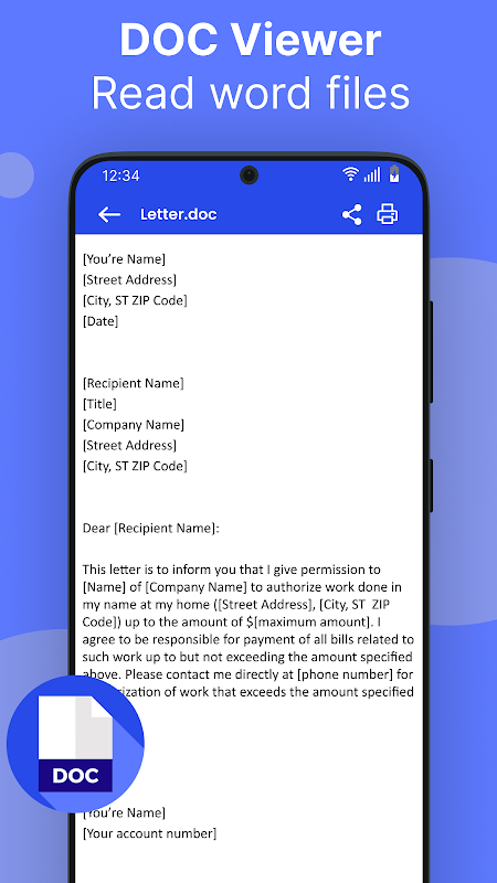 Word Viewer i Word Reader mogą czytać wszystkie formaty tekstu (doc, docx) z dużą szybkością, nie musisz się martwić o brakującą czcionkę podczas otwierania plików Word doc.