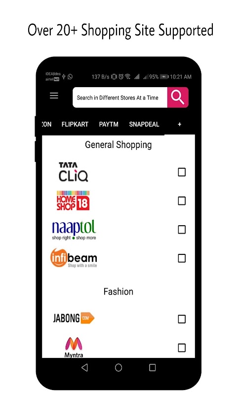 A Single online shopping app & single Search to compare price from all top online shopping stores. Easily compare price from multiple online shopping.