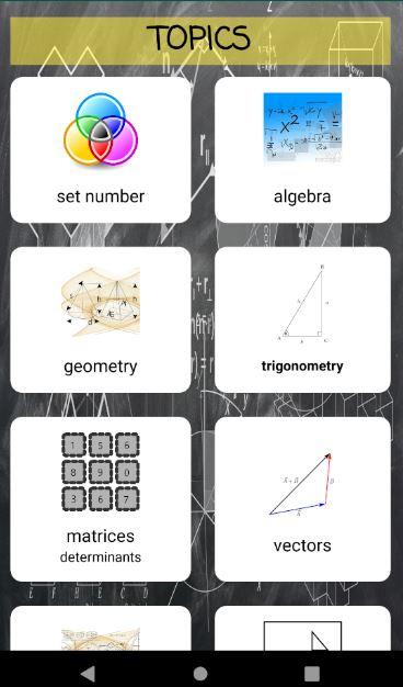 zawiera wzory matematyczne, które pomogą wszystkim uczniom klas 9, 10, 11, 12 i wyższych. Ta kolekcja wszystkich formuł matematycznych w telefonie po prostu poradzi sobie z bardzo łatwym wyszukiwaniem formuł na dowolne tematy matematyczne zamiast znajdowania ich w notatkach