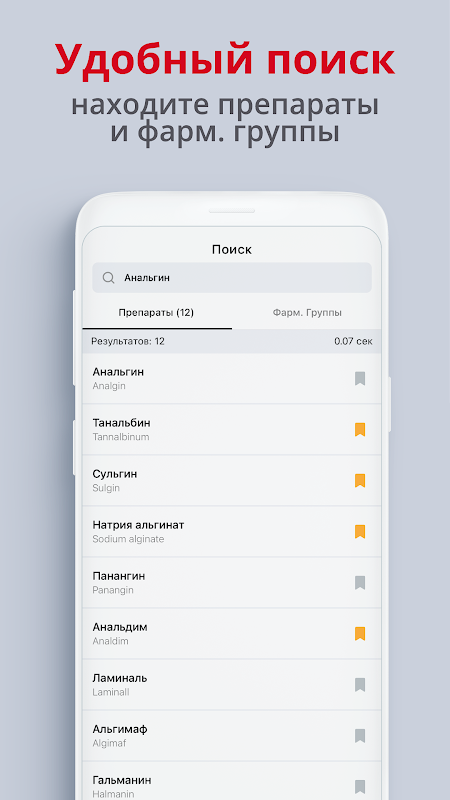 Bardzo szybkie i sprytne wyszukiwanie w aplikacji pozwoli Ci znaleźć odpowiedni lek lub grupę farmakologiczną w zaledwie kilku literach i da Ci wszystkie informacje o szukanym pierwiastku, w tym kategoryzację według grup farmakologicznych, szczegółowy opis analogów i innych informacji.