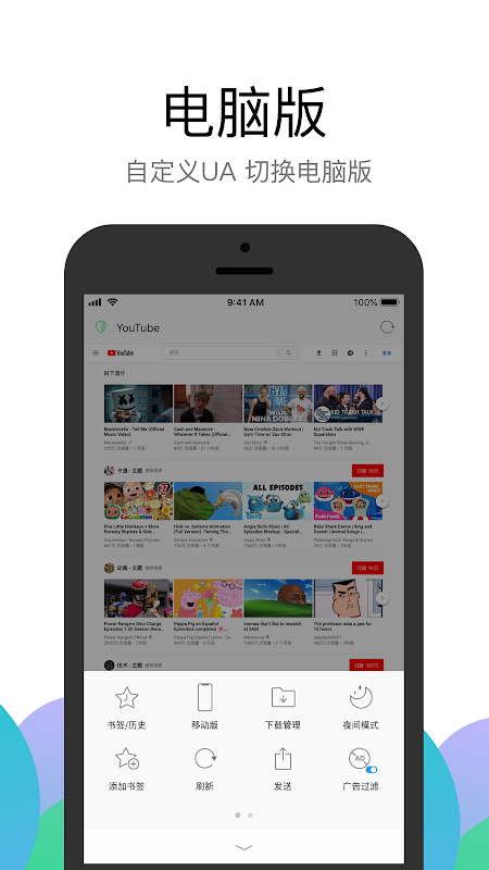 • 内置Adblock Plus,可选多语言规则和第三方规则,自动屏蔽侵入式广告