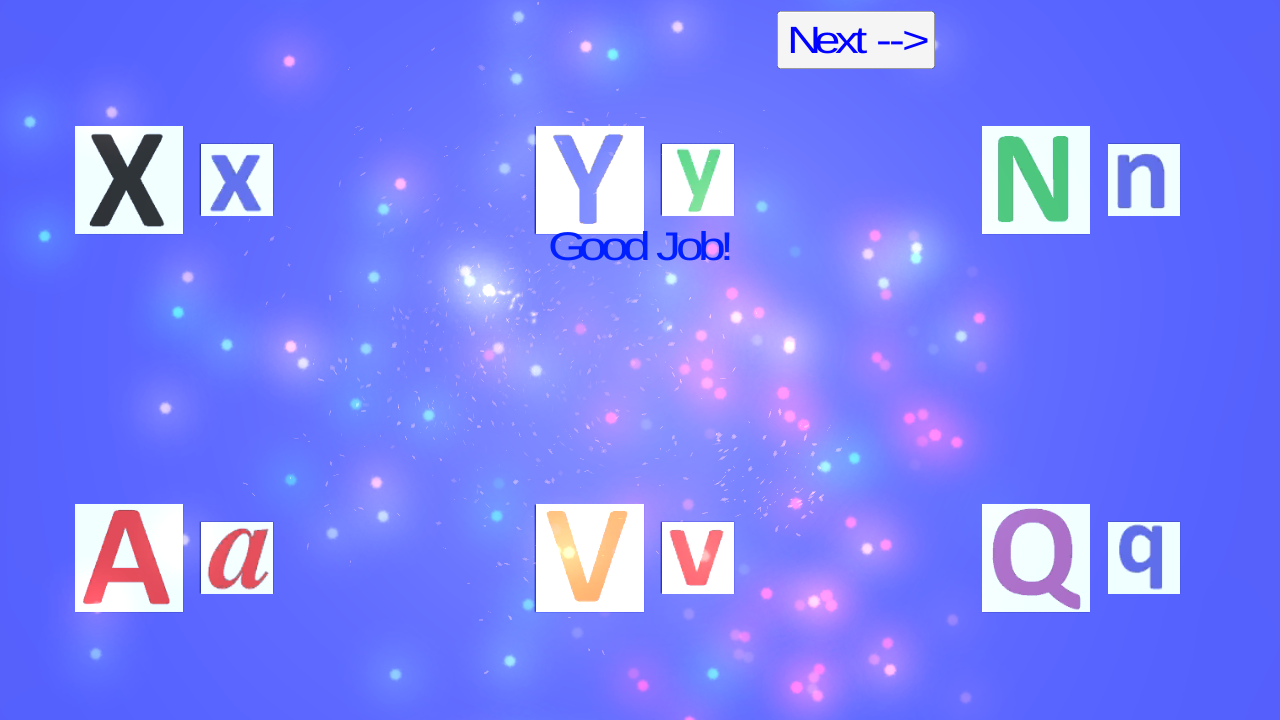 Kiedy wszystkie litery są dopasowane "Dobra robota!" jest wyświetlana na ekranie, a fajerwerki pojawiają się kilka sekund później.