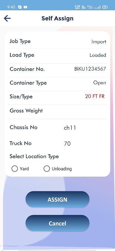 2. List of assigned containers appear after the respected login of the Driver.