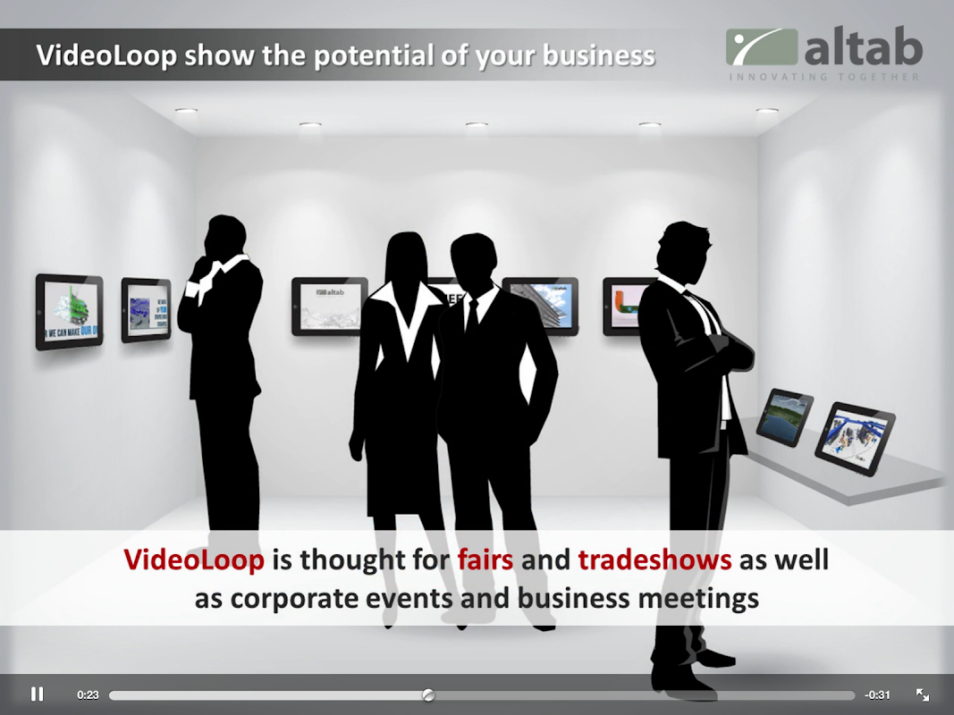 VideoLoop is thought for fairs and tradeshows as well as corporate events and business meeting.