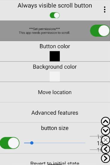 3) Kliknij przycisk Zaawansowane funkcje w szóstym wierszu. Kliknij przycisk „Typ przycisku” w pierwszym wierszu, a następnie kliknij jeden przycisk w trzecim wierszu. Naciśnij i przytrzymaj przycisk i szybko przesuń w górę lub w dół, a następnie zwolnij, aby przewinąć. Zwolnij przycisk po kilku sekundach, aby przewinąć do góry lub dołu ekranu. Możesz przesunąć przycisk, przytrzymując przycisk i przesuwając go.