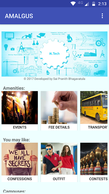 * Amalgus - AN MRGI za dewdrop * jest Android aplikacja dostarczana wyłącznie do tworzenia łatwość do studentów, pracowników, a użytkownicy zainteresowani masywnej MallaReddy grupy instytucji.