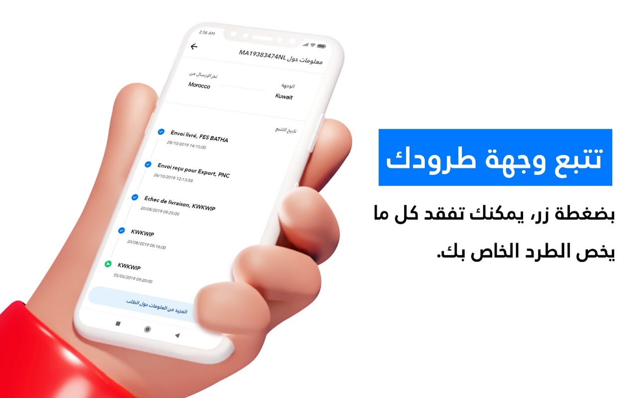Za pomocą NerblyTracker możesz śledzić paczki przychodzące i wychodzące dostarczane przez większość firm dostawczych w Maroku, takich jak Amana, Ghazala i inne.