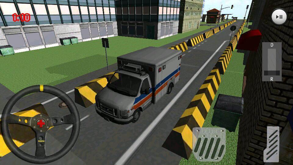 Kontrolować pogotowie w prawdziwym parkingu z kierownicy, przyspieszenia na ekranie i pedały hamulca. Przesunąć swój bieg do przodu lub do tyłu, gdy chcesz!