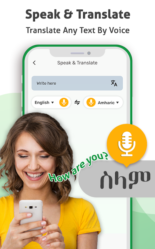- Przetłumacz łatwo z angielskiego na Amharic, bez konieczności kopiowania i wklejania z różnych miejsc.
