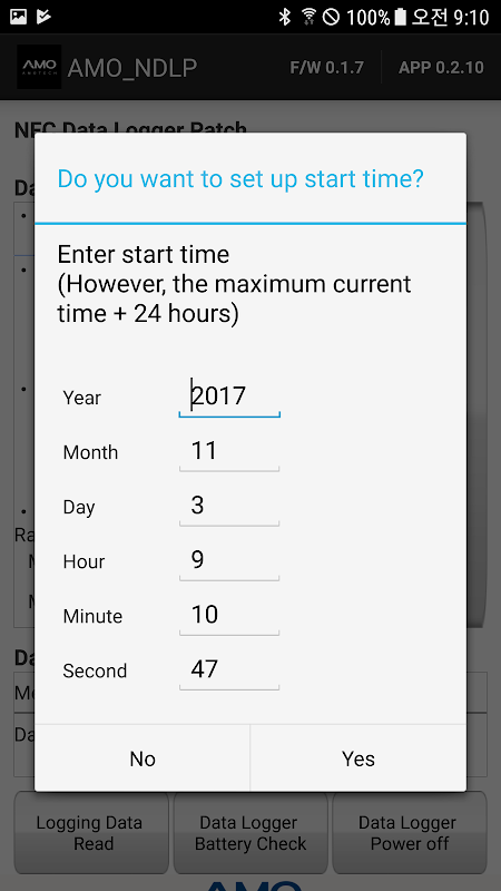 아모텍의 NFC Data Logger Patch를 구동 하고 NFC Data Logger Patch에 저장된 데이터를 읽는 어플리 케이션