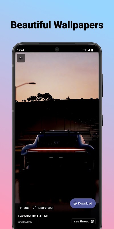 • Carousel Viewer: Swipe through downloaded wallpapers effortlessly.
