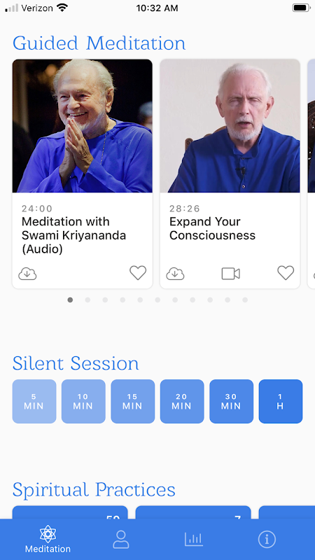 Możesz pobierać medytacje do przeglądania w trybie offline, w tym filmy lub tylko dźwięk, jeśli chcesz zaoszczędzić przepustowość. Dostępnych jest wiele atrakcji z przewodnikiem, w tym: