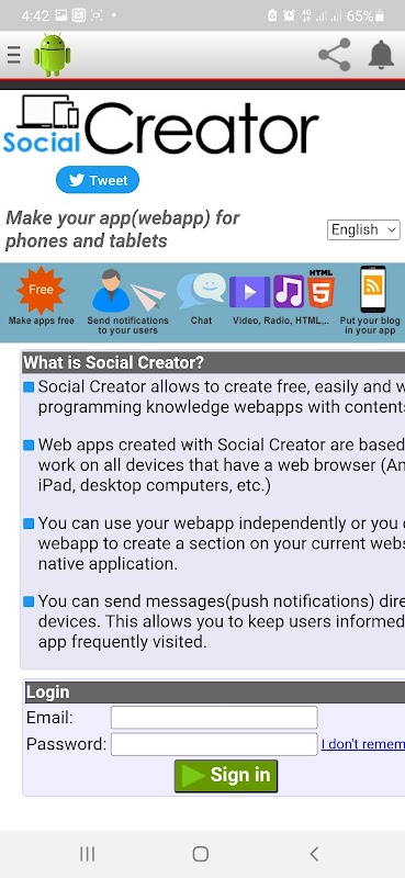 Darmowy kreator/kreator/konstruktor aplikacji na Androida