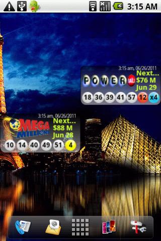 * 2x1 widget (long-press na urządzenia z systemem Android, aby wybrać z menu widget), aby wyświetlić popularne numery lotto w Powerball i Mega Millions