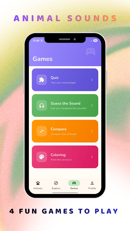 Poznaj ponad 30 dźwięków zwierząt dzięki quizom, grom, kolorowaniom i codziennym odkryciom!