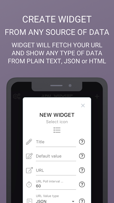 ANY WIDGET - is a super simple way to create your own everyday mobile dashboard from existing widgets or for any API data. It will fetch your URL and show important info